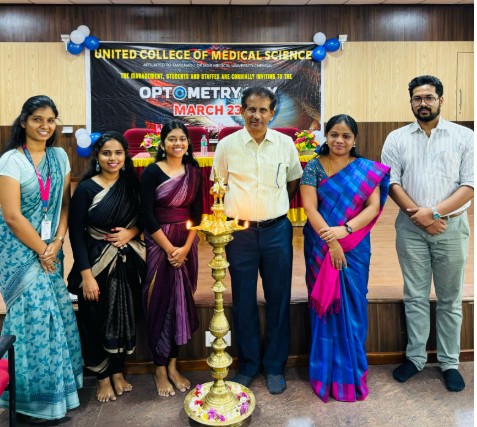 The Department of Optometry at United College of Medical Sciences organized the Optometry Day Celebration on 25th March, 2025 at Saraswathi Auditorium with great enthusiasm and participation from students, faculty, and invited dignitaries. The celebration aimed to promote awareness about the significance of eye health and to recognize the vital role of optometrists in the prevention and management of visual disorders.